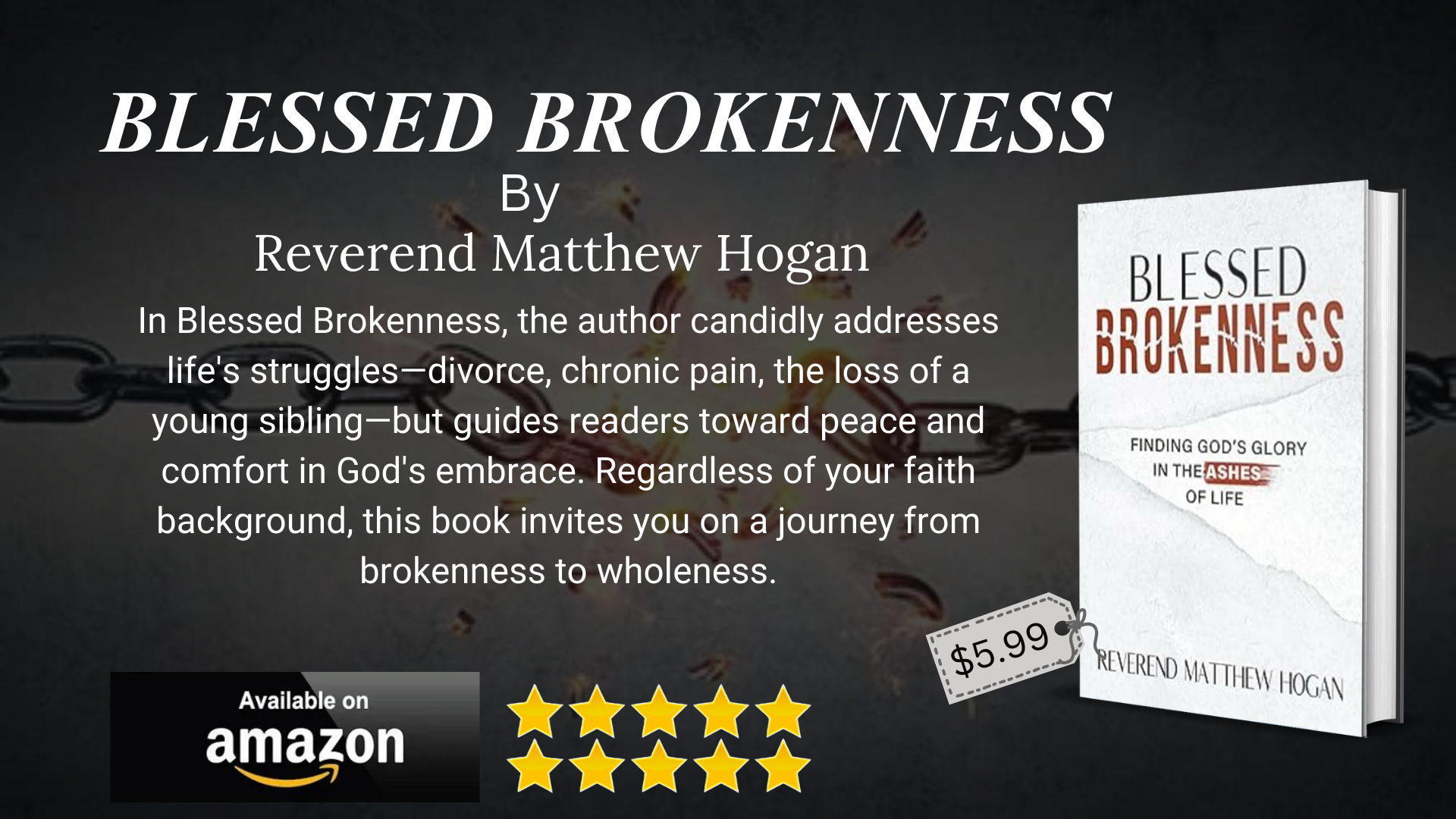 In Blessed Brokenness: Finding God’s Glory in the Ashes of Life, Reverend Matthew Hogan walks us through the years long journey he and his wife have been on through more pain and struggles than most of us would know in two or three lifetimes. And yet, even in the midst of all that turmoil, they have found a secret the rest of us need to hear—a secret that not only helps us make sense out of the messes we find ourselves in but can even draw us closer to our Heavenly Father–the One who loves us most.
